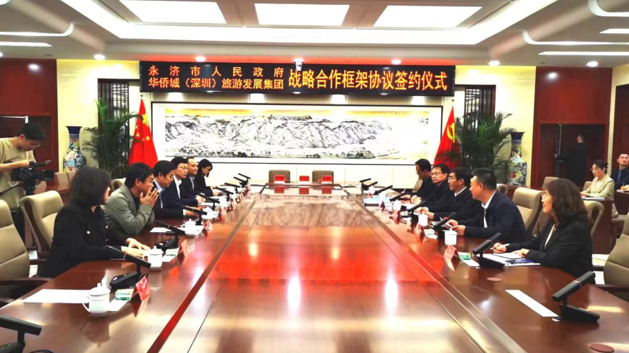 ▲永濟市與華僑城旅發(fā)公司戰(zhàn)略協(xié)議簽約現(xiàn)場