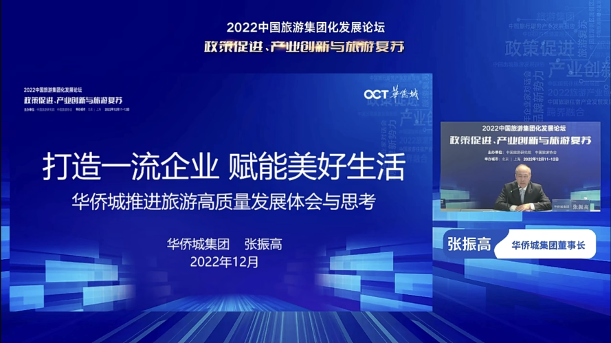 12月11日-12日,由中國(guó)旅游研究院和中國(guó)旅游協(xié)會(huì)主辦,以“政策促進(jìn)、產(chǎn)業(yè)創(chuàng)新與旅游復(fù)蘇”為主題的2022中國(guó)旅游集團(tuán)化發(fā)展論壇在北京和上海舉行。論壇期間正式發(fā)布《中國(guó)旅游集團(tuán)化發(fā)展報(bào)告(2022)》,同時(shí)公布了“2022中國(guó)旅游集團(tuán)20強(qiáng)”名單,華僑城集團(tuán)再次上榜,連續(xù)14年獲評(píng)“中國(guó)旅游集團(tuán)20強(qiáng)”。